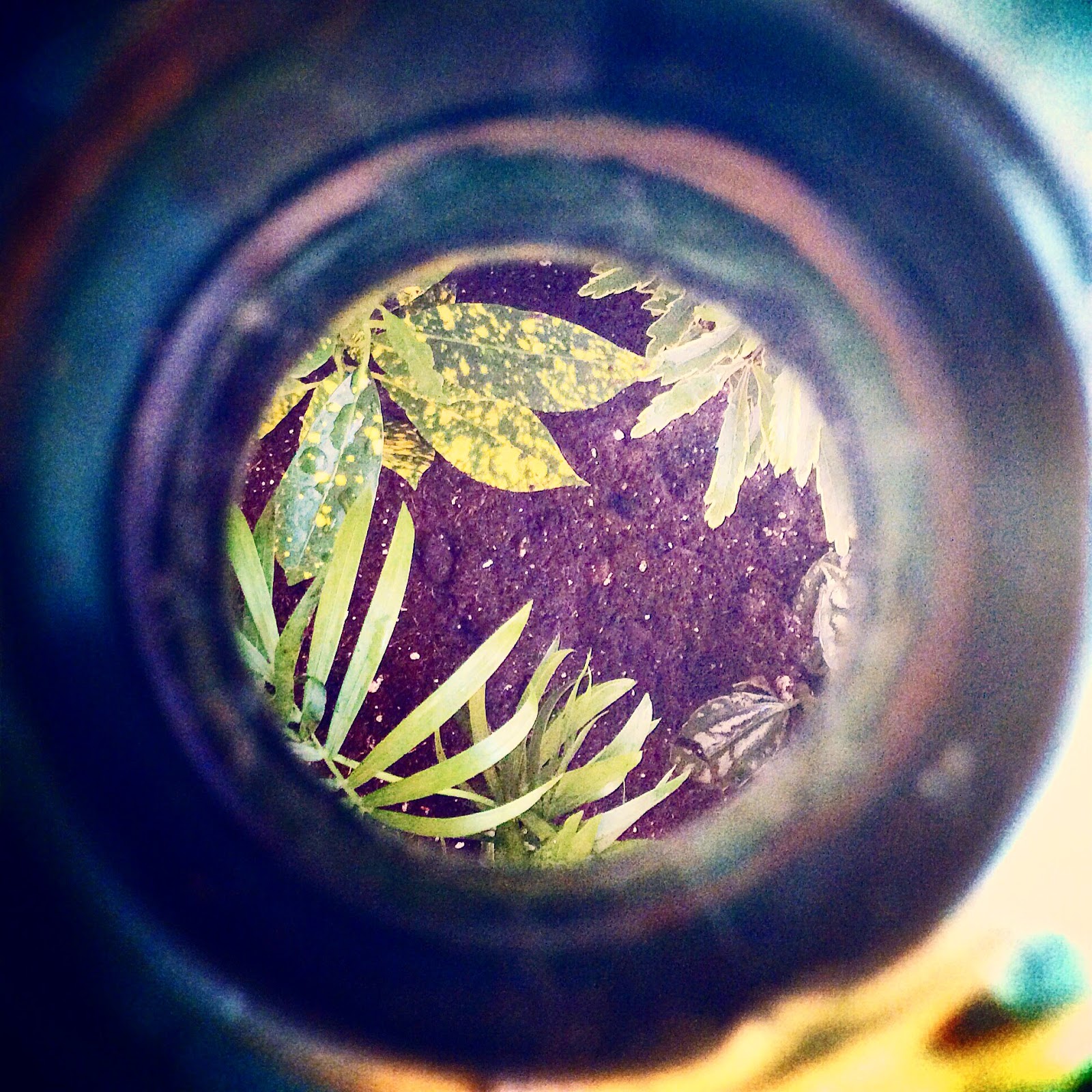 I have made open terrariums before, the kind that are so popular now, inside glass balls and containers with lids where minimal skill is required (see my blog post, "Make Your Own Terrarium" from August 2014). But this is something else. Somehow, my friend's dad manages to get these fairly large plants inside this teeny tiny bottleneck opening using a coathanger...and magic. I don't fully get it, but I love it. And I am so grateful to Ian Campbell for this gift that made me almost able to forget about my crappy phone situation. My terrarium is beautiful...and in case you are wondering, I did get a phone. From Costco. And it works great.