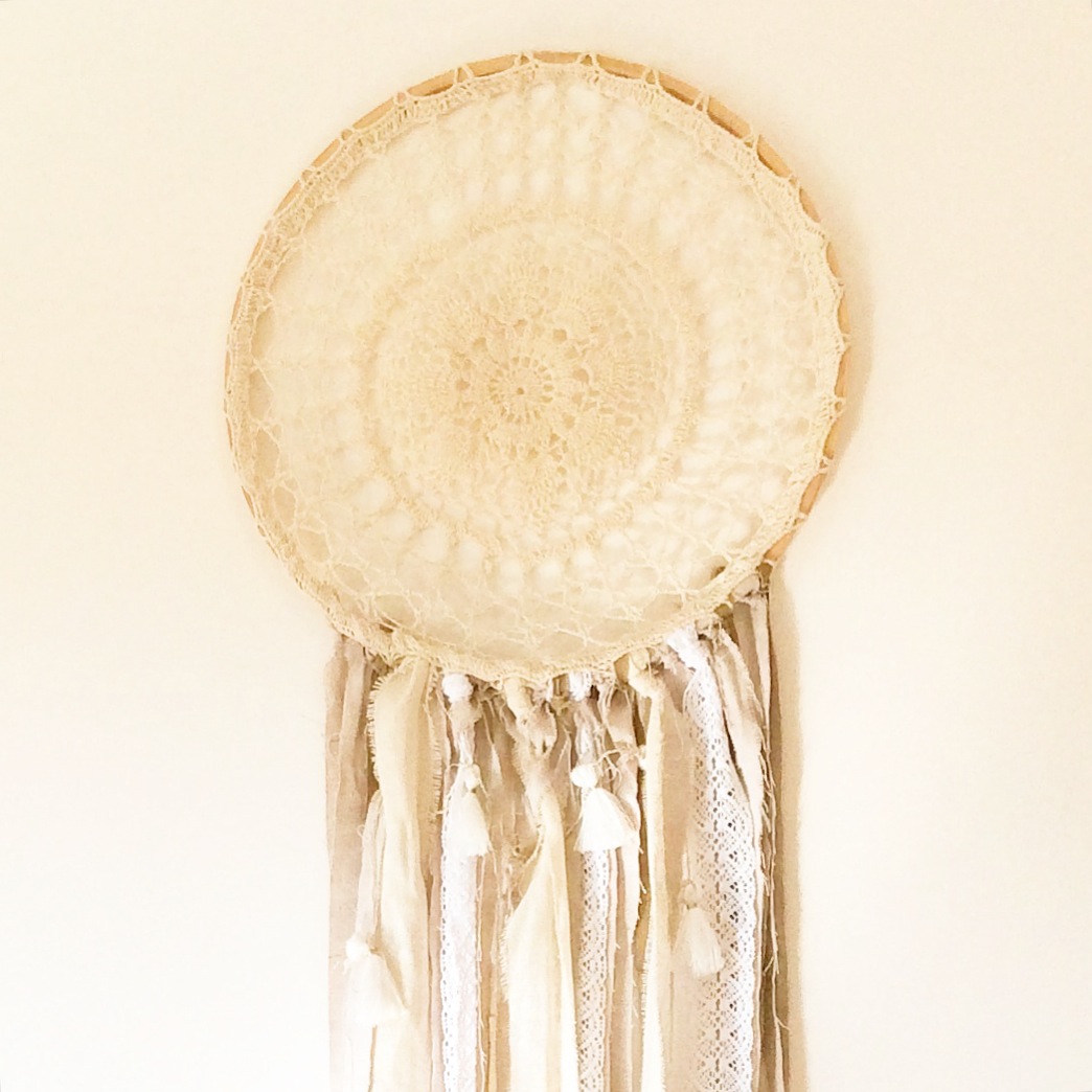 I am quite certain I will sleep well with this dreamy lady watching over me! It only took an hour or so to make, for a total cost of $20, much less than what you would pay if you were to buy one from Etsy. Not that you shouldn't...there are plenty of gorgeous dream catchers available on Etsy. But if you possess even an ounce of creative mojo, you can definitely make this one yourself.