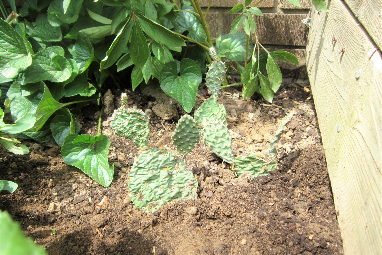 So, last winter, I happened upon someone online who was selling cuttings from his outdoor cactus plants and I bought three cute, Mickey Mouse-eared cuttings from him for under $10. I kept them on my windowsill this whole time until today when, with great trepidation, I planted them in my back garden.