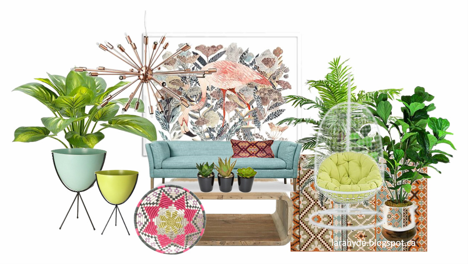 The wood coffee table brings the hit of rusticity that keeps the room feeling down to earth, and the Sputnik light fixture adds a dose of metallic and ties everything together. And, of course, this being a Florida Room, I could not help but throw in an ode to the Sunshine State in the form of the large flamingo print, which is actually my very favorite thing in the room.